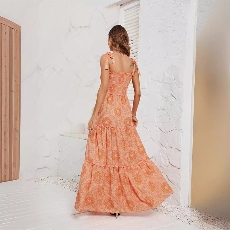 Women's Summer Casual Style Sleeveless Printed Fashion Multi-Layer Dress for Women