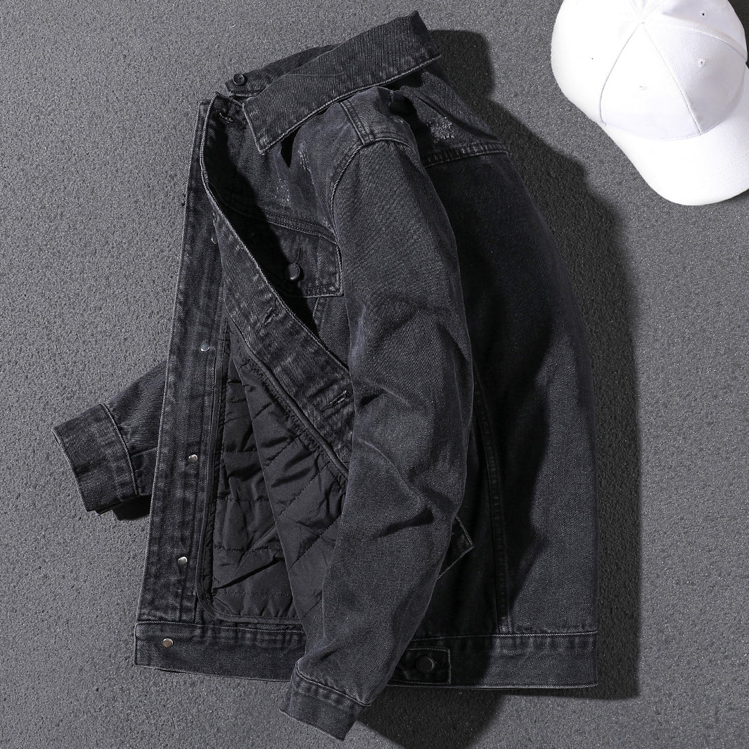 Handsome autumn and winter new style detachable hooded denim jacket men's trendy brand Korean version velvet thickened motorcycle jacket men's trendy