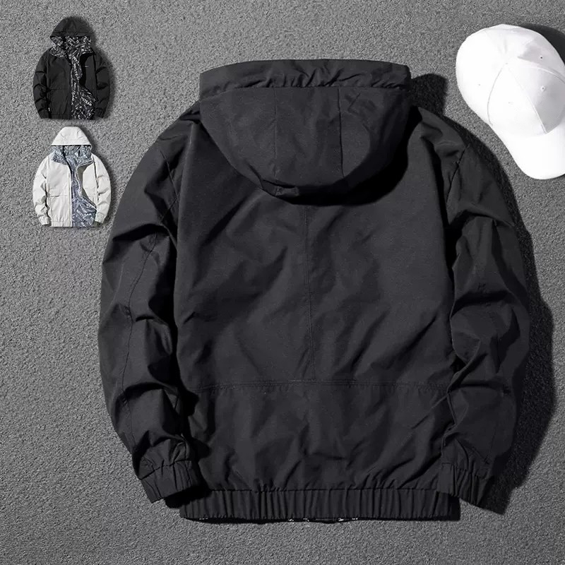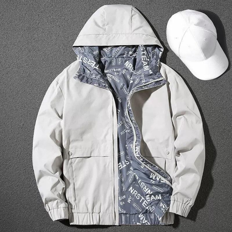 Handsome reversible jacket men's autumn and winter trendy hooded slim jacket