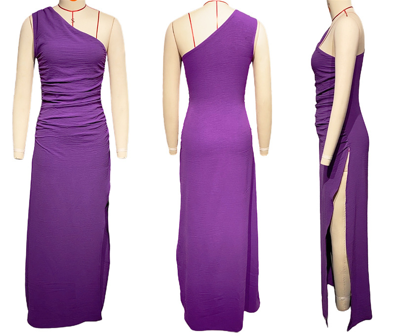 New sexy slanted shoulder slim fit slit versatile dress for women