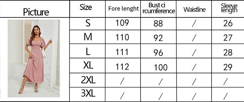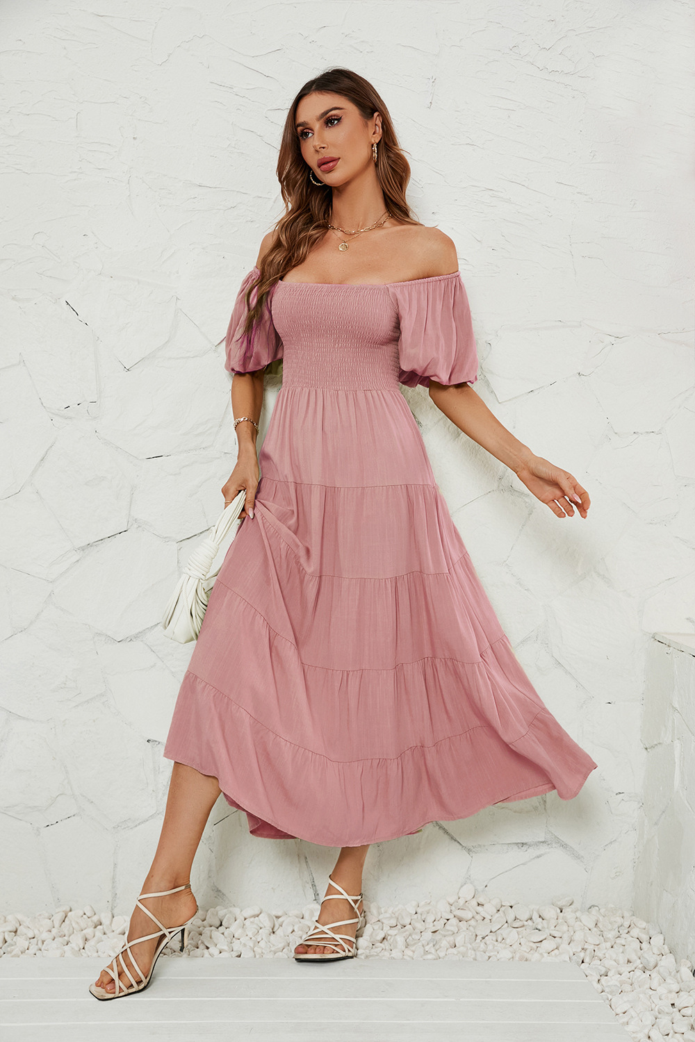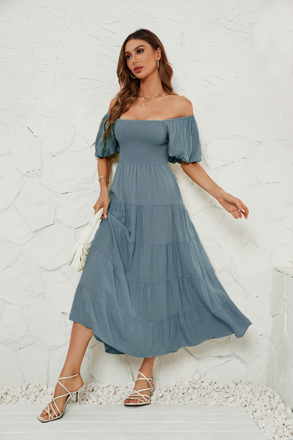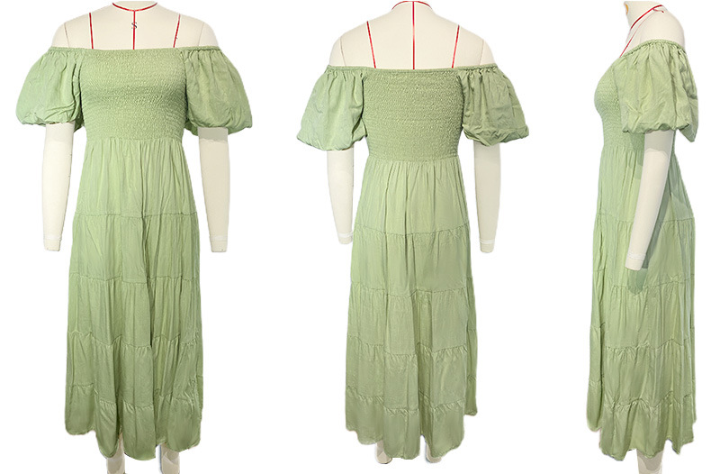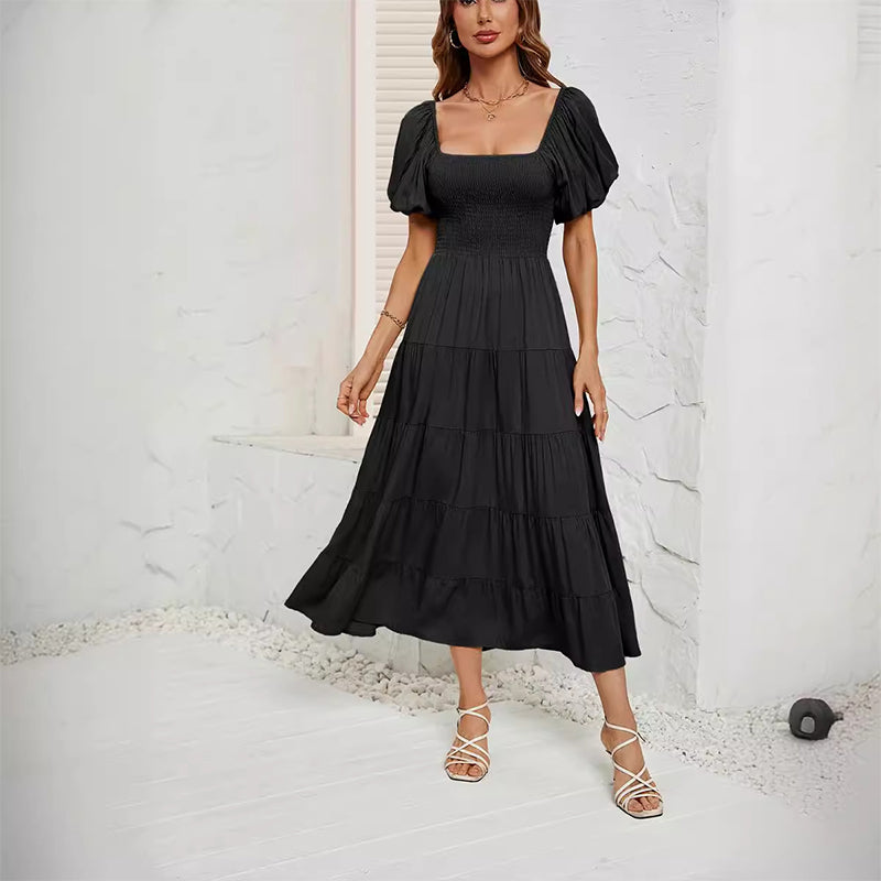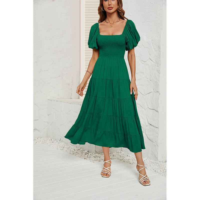 Women's Summer Solid Color High Waist Puff Sleeve Waist Dress for Women
